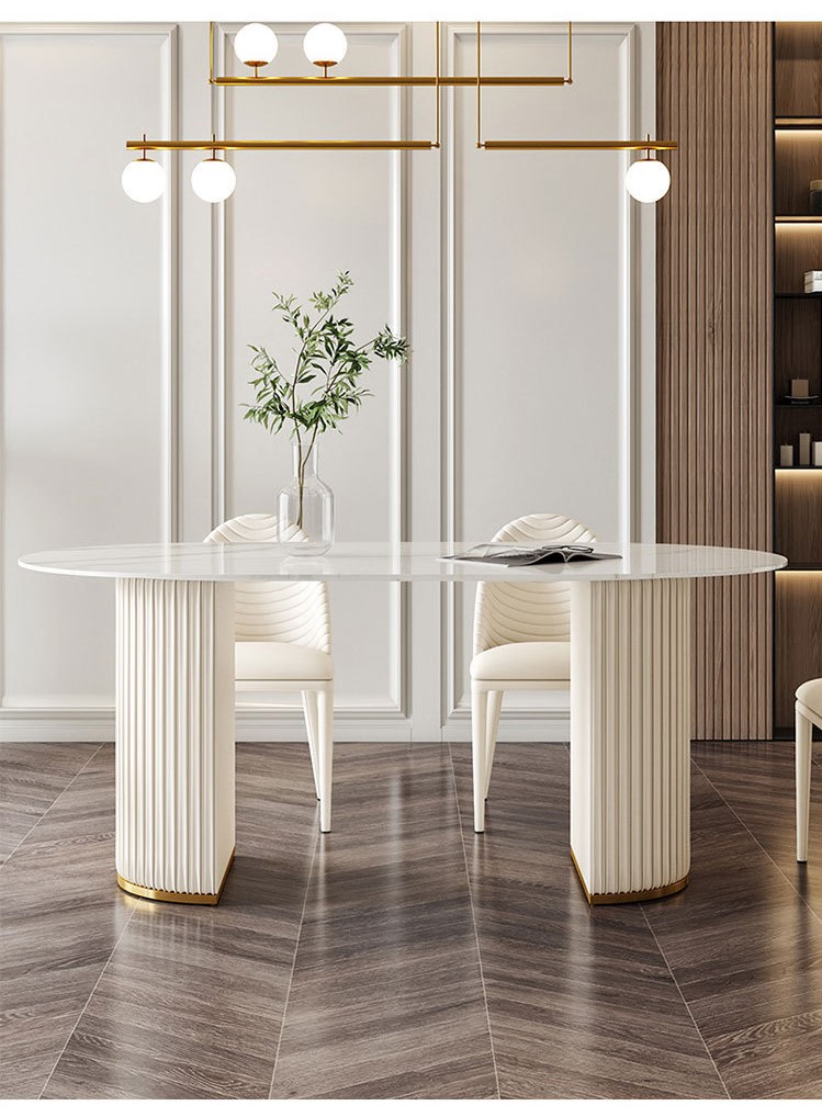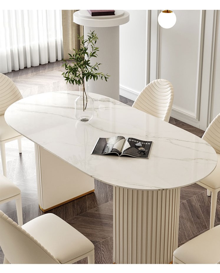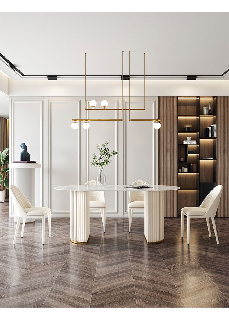 Màu sắc: Bàn mặt bàn màu trắng, ghế da trắng sữa