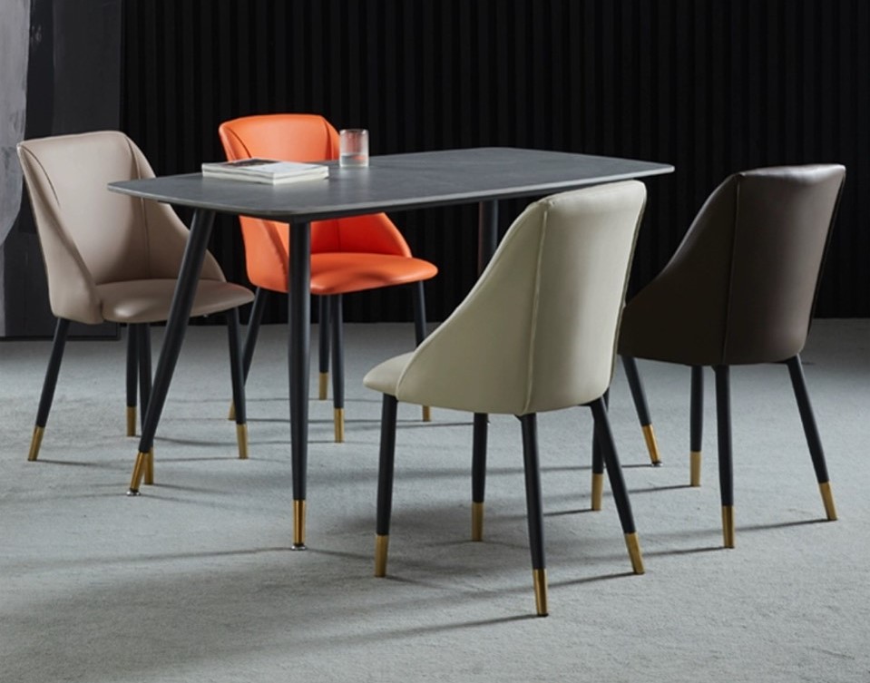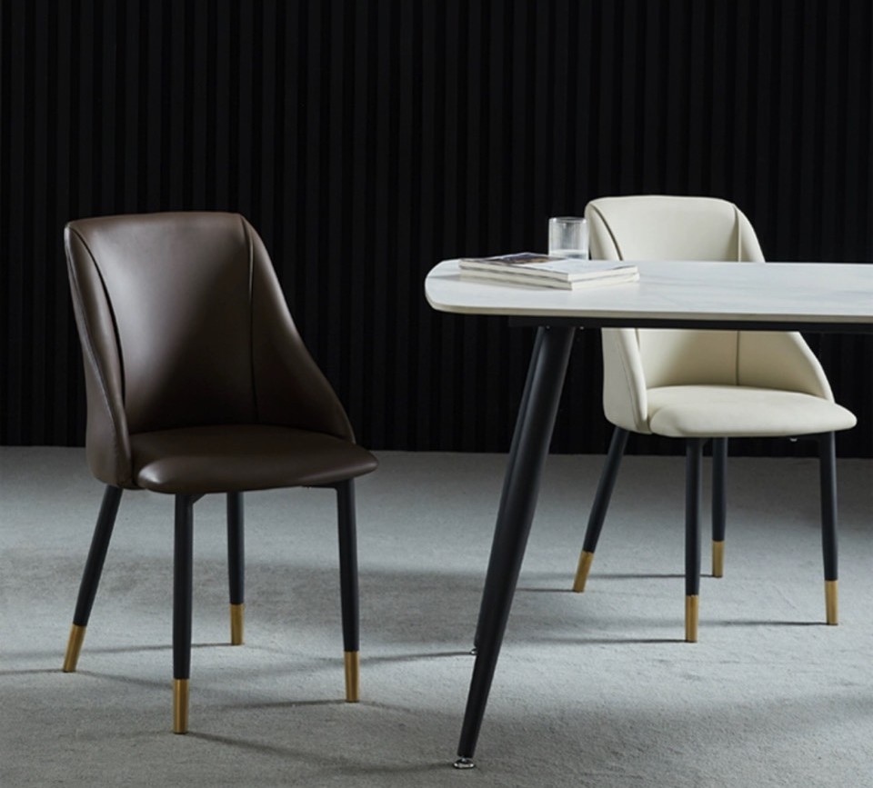 Chất liệu: mặt bọc da, chân sắt sơn tĩnh điện bọc núm đồng