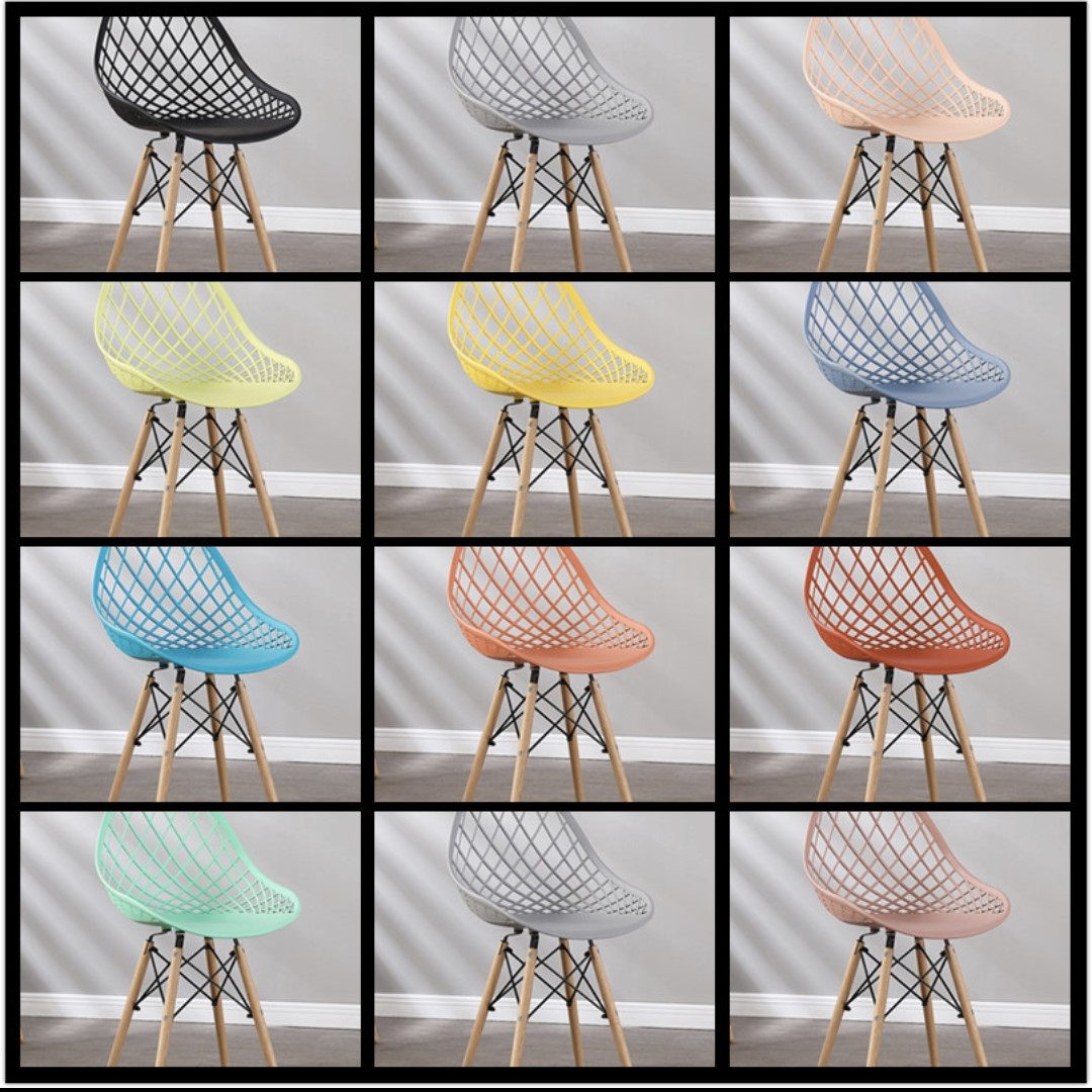 Chất liệu: mặt nhựa PP, chân gỗ đan