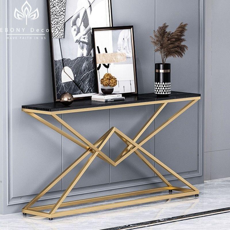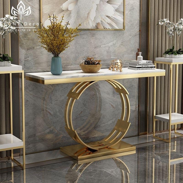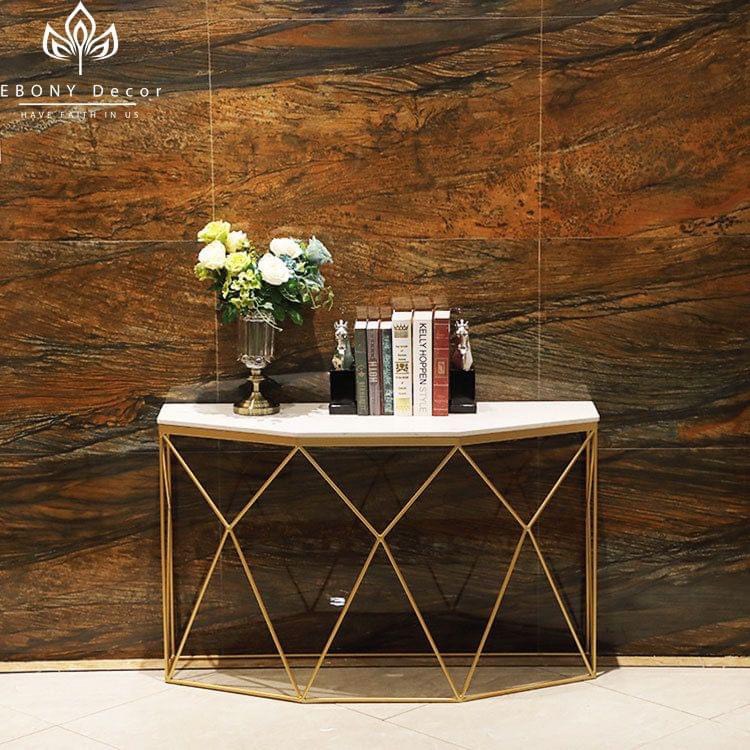 Chất liệu: Bàn mặt đá cẩm thạch có thể thay thế bằng các loại đá khác như ceramic, đá tự nhiên, marpre nhân tạo kết hợp với chân sắt sơn tĩnh điện mạ vàng nhập khẩu nguyên chiếc.